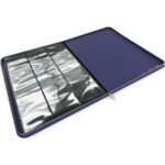 The lorebook has 14 double-sided 9-pocket pages with 252 pockets for standard-sized cards. The design features a deep purple with ink lines around the Disney Lorcana lore and inkwell symbol, similar to a card back.
